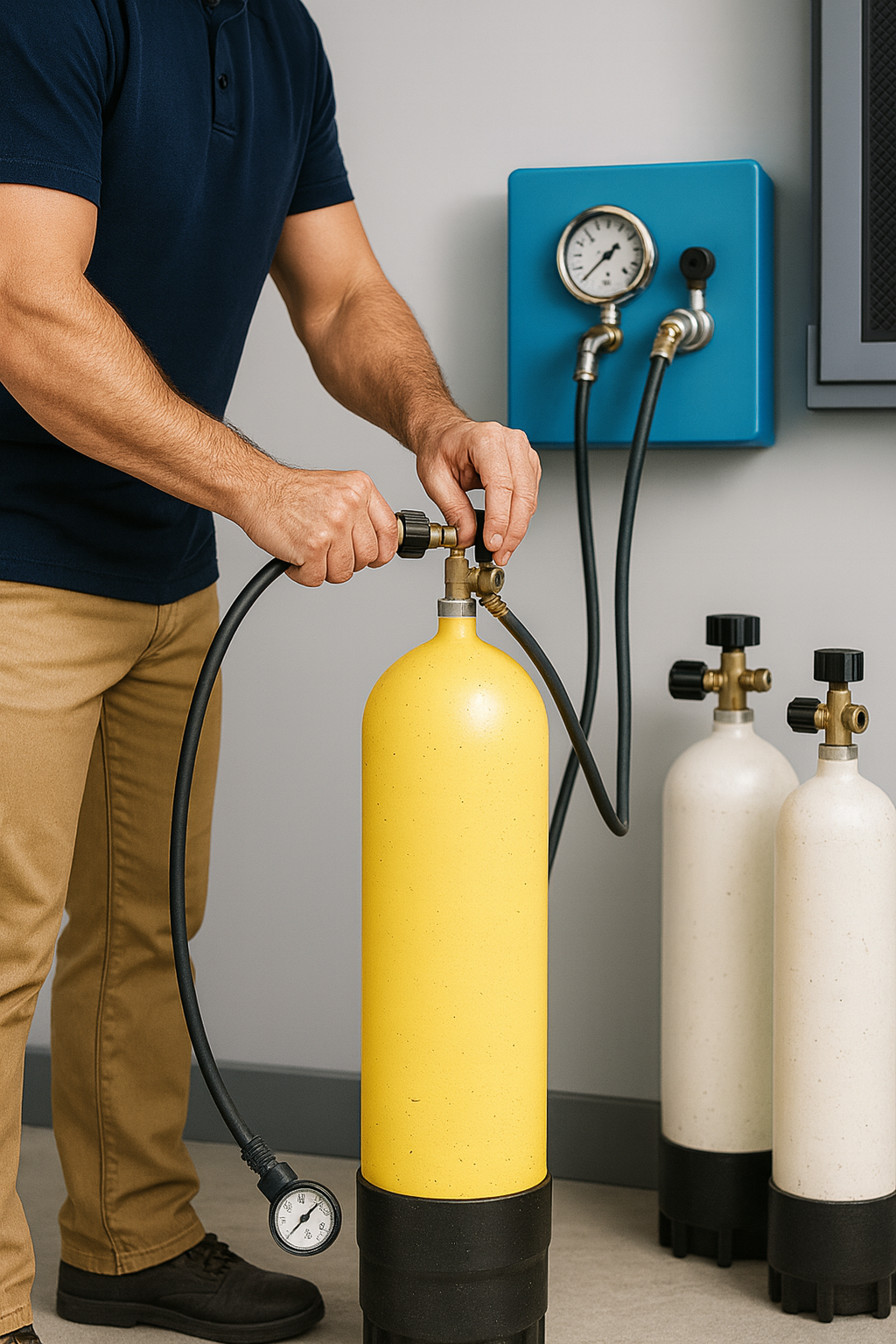 Bei TiBa-Dive bekommst du deine Pressluftflaschen schnell, sicher und zuverlässig gefüllt – damit deinem nächsten Tauchgang nichts im Wege steht!